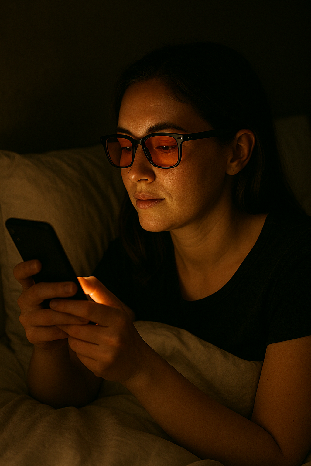 Our amber lenses eliminate 99.9% of blue light while maintaining crystal-clear optics.