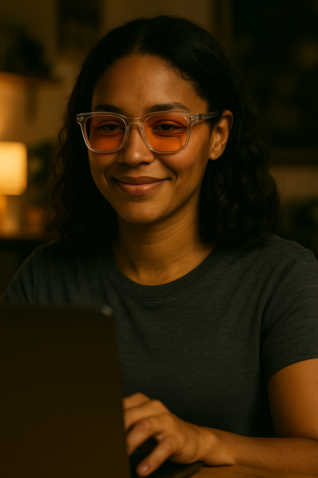 The orange lenses in Noctesse glasses are scientifically designed to block up to 99% of harmful blue light, which is known to cause eye strain, headaches, and sleep disruption. The tint enhances contrast and reduces glare, making them ideal for screen use.